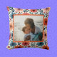 Peach & blue Spring floral pattern Custom photo Throw Pillow