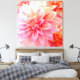 A harmonious blend of colour and elegance with large, vibrant dahlia flowers set against a soft peach pink background.