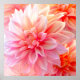A harmonious blend of colour and elegance with large, vibrant dahlia flowers set against a soft peach pink background.