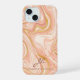 Peach Cake Marble Gold Glitter Customizable iPhone 15 Case