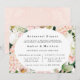 Design features a printed coloured with floral element in shades of peach and cream over greenery leaves and hydrangeas with tulips blooms on a light peach watercolor background.. Great for your wedding celebrations!