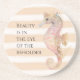 Peach Cream Watercolor Beach Stripes Gold Seahorse Coaster