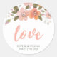 Peach Delicate Floral Wedding Love Classic Round Sticker
