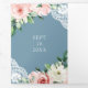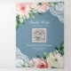 Peach Floral Lace Dusty Blue QR Code Wedding Tri-Fold Invitation