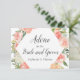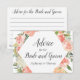Leave sage advice for the bride and groom with this peach floral "Advice for the Bride and Groom" card that can be personalized with their names. The front of the card features a diamond shaped floral design with roses, peonies and hydrangeas in pastel peach, salmon pink and off-white with trailing greenery. The back of the card has space for your guests to write their personal notes of advice for the happy couple.