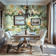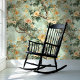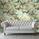 Peach Floral on Green Background Chinoiserie Style Wallpaper