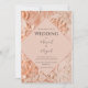 Beautiful peach and teracotta colour floral brocade background with lovely diamond shape inlay with lovely fonts with your event details. So pretty for any season wedding.