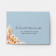 Elegant blue RSVP envelope with peach floral inside and printed return address outside. Design coordinating our "Peach Delight collection" wedding RSVP cards. NOTES: 1) the default "A2" envelope size selected fits our coordinating 3.5" x 5" RSVP card size, if you make changes on the RSVP card size, please make sure to select the correct RSVP envelope size (see each envelope size measurements explained on product page bottom left area), 2) Option to choose paper type from basic paper or linen. Envelope design with your RSVP return address information along with your name(s) in elegant hand written calligraphy on the front. Inside with exquisite watercolor floral in a beautiful blend of peach, orange, blush, dusty coral, cream and champagne hues. Please note that only RSVP envelopes can be personalize with printed name(s) and address as Zazzle only sells envelopes in bulk, therefore they all must have the same identical name and address on them. Part of our "Peach Floral Delight with Blue" collection with a variety of coordinating products available. Visit the entire extent of this collection at: https://www.zazzle.com/collections/peach_floral_delight_with_blue-119436951689312574
