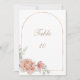 Pretty peach floral watercolor wedding table number cards. Shades of blush pink, peach and rose gold.