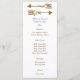 Here's a pretty wedding menu card that uses whimsical images of floral decorated, hand drawn arrows at the top border. Your custom text is in warm brown, with the bride name, groom name, and date in blue. The image and text are placed on an elegant white background. The back of the card is a light peach orange. Be sure to see the matching wedding products, including invitations and RSVP cards, in our store.