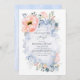 Peach Flowers and Greenery Dusty Blue Graduation Invitation