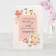 Pretty and thoughtful greeting card for your classmate's birthday with peach pink and white spring flowers, rustic wood pattern and hand lettered style text.