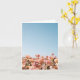 Field of peach flowers. Blank greeting card.