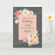 Pretty and thoughtful greeting card for your sister's birthday with peach pink and white spring flowers, rustic chalkboard pattern and hand lettered style text.