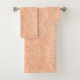Bath Towel Set Of 3 bathroom amenity and home furnishing decor accessory printed with Peach Fuzz Faux Leather illustration custom printed to order by The Fabric Seal Shop at Zazzle #ZazzleMade https://www.zazzle.com/store/thefabricseal