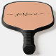 Stylish peach fuzz black script name womens pickle ball paddle. Personalize with your name..