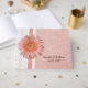 Rustic chic wedding guest book done in a peach coloured burlap look. Graphics of white lace, a satin looking peach coloured ribbon and a big peach Gerber daisy bloom, decorate the left front of the book. Personalize the text fields for your special day.
