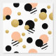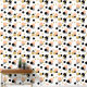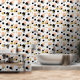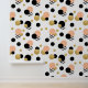 This fun wallpaper features polka dots in peach, gold, black and stripes. The perfect accent addition to your home decor.