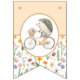 Add a warm, rustic charm to your baby shower with this peach-toned bunting flag featuring a sweet hedgehog riding a bicycle through a field of watercolor flowers. This banner is perfect for woodland, garden, or “locally grown” baby shower themes.