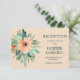 Elegant watercolor of flowers in shades of peach to orange trimmed with teal to jade green foliage with your wedding reception details in chic teal lettering. Change the peach background to any colour to match your wedding theme. MATCHING items in our store.