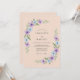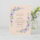 This design features a soft peach background adorned with ethereal watercolor blossoms in lavender and pale blue. Delicate petals resembling anemones are paired with wispy sage green foliage for a light, airy feel. The painterly style evokes a romantic and whimsical mood, ideal for a seasonal spring or summer event.