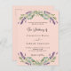 A trendy peach coloured background decorated with lavender flowers and eucalyptus greenery. Personalize and your names and details.