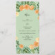 Peach Light Green Peony & Rose Floral Mariage Menu