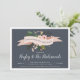 Celebrate your best girls with these chic bridesmaids brunch invitations. Design features a blush pink ribbon bearing the words "bridesmaids brunch" with peach flowers and green leaves peeking out. Personalize with your brunch details in white serif and calligraphy lettering.