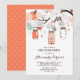 Feminine and whimsical baby shower brunch invitation featuring illustrations of peach and mint mason jars, flowers, heartstrings and lovebirds. This baby shower invitation is perfect for spring and summer showers. Other colours are available.