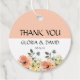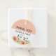 Peach Modern Floral design. This Wedding favour-tag template combines two size of font for more dynamic look.