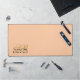 Personalized chic elegant stylish refined desk mat, customizable personalizable with monogram, initial letters and name. Simple monochrome peach, pastel orange background, elegant gold calligraphy script handwritten initial letters, and classy black typography for the name. Beautiful and timeless, for you or as a thoughtful custom fashionable useful gift for her. A best friend , a coworker or someone from the family, a mom, a daughter, a sister, will be very happy to receive this. Great computer or laptop accessory, for home, home office or business office space. Feminine , professional or girly. Very affordable, a tech accessory gift under 50 dollars for her, even under 40 dollars, suitable for many occasions and celebrations.