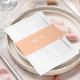 Wrap your wedding invitations in style with this elegant wedding envelope belly band. Designed with a solid peach colour background, it features a clean, simple layout highlighting the modern bride and groom’s names in a mix of classic calligraphy script and refined typography. A subtle monogram adds a personalized touch, making it perfect for a minimalist wedding with a timeless yet contemporary feel.