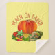 Peach on Earth, Goodwill to all Fruits and Vegetables. Aha, all these years you thought it was "Peace on Earth," etc. OK, that's a thing, too. But if you change the "h" to an "e" you have a totally alternative, punny way to say Happy Holidays that is especially for vegetarians, vegans, and all lovers of healthy fruits and vegetables. Which is just about everybody, if you don't count meat, right? So here is a fun, snuggly sherpa blanket with the Christmas wish colourfully illustrated by said peach and vegetables, in a fun, charming font. Happy Inclusive Holidays!