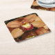 Peach Orchids with Raindrops Floral Square Paper Coaster