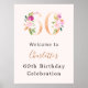 A peach coloured background. Decorated with foral numbers in faux gold and pink. Personalize and add a name and age.