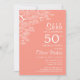 Peach Pink Pine Branch Surprise 50th Birthday Invitation