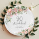 Peach Pink Rose Floral 90th Birthday Paper Plate