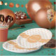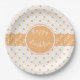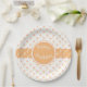 Happy birthday peach polka dot patterned paper event plate, personalize the white background or peach stripe to any colour to suit your event style.