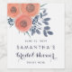 Chic and elegant in a romantic watercolor floral design, these bridal shower wine labels are perfect as favours, game prizes, or placed on tables. Labels feature the guest of honour's name and event type in modern block and calligraphy script lettering, flanked by your event date and wine varietal or other information of your choice, with a cascade of watercolor poppy flowers in vibrant coral peach and rich navy blue.
