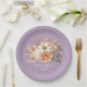 Add a romantic touch to your wedding with these peach and purple floral paper plates. Featuring a soft lavender background with watercolor peach roses, white lilies, pampas grass, and greenery, these elegant plates are perfect for wedding receptions, bridal showers, rehearsal dinners, or engagement parties. Personalize with names and date for a unique keepsake. Matching napkins, invitations, and other wedding stationery are available in our collection to complete your tablescape.