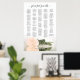 This gorgeous wedding seating chart features a photo of a long-stemmed pale orange or light peach colored rose lying on its side reflecting in a pool of water with waves and ripples. The title reads "please find your table" in elegant lacy script calligraphy. There is space for the up to 250 names with the names of the couple and wedding date below. Wonderful way to help your guests find their tables while making your reception more beautiful.