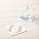 Peach Rose Pink Green Floral Gold Frame Wedding Square Paper Coaster