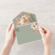 Peach Sage Green Floral QR Code Wedding All In One Invitation
