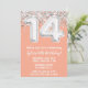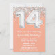 Peach Silver 14th Birthday Party Invitation