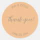 Peach Stylized Wedding Thank You Classic Round Sticker