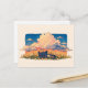 Peach Sunset Cloud Sleeping Black Cat Postcard