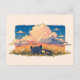 Bring a touch of magic to someone's mailbox with this charming black cat postcard. This serene illustration depicts a tiny black kitten curled up in a vibrant meadow of orange and white wildflower, resting under towering, fluffy peach clouds. The warm sunset glow, twinkling stars, and soft, painterly textures create a nostalgic and inviting atmosphere that is perfect for sending a cozy note to a fellow cat lover.