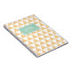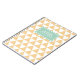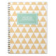 Trendy, modern triangle pattern in peach and white with a mint green custom name template.