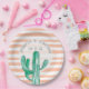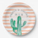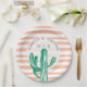 Peach Watercolor Stripes Cactus Southwest Wedding Paper Plate