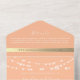 Elevate your special day with this chic all-in-one peach wedding invitation. Featuring beautiful gold string lights and a custom photo of you and your partner on the back, this modern design blends rustic charm with elegance. Easily personalize with your own photo, wedding details, and RSVP information, creating a memorable invitation that perfectly captures your love story. Ideal for a romantic and intimate celebration!